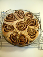 2. Knead the dough on a lightly floured surface until smooth. roll dough into a 15 x 8 inch rectangle. Lightly grease a 9 inch round baking dish.